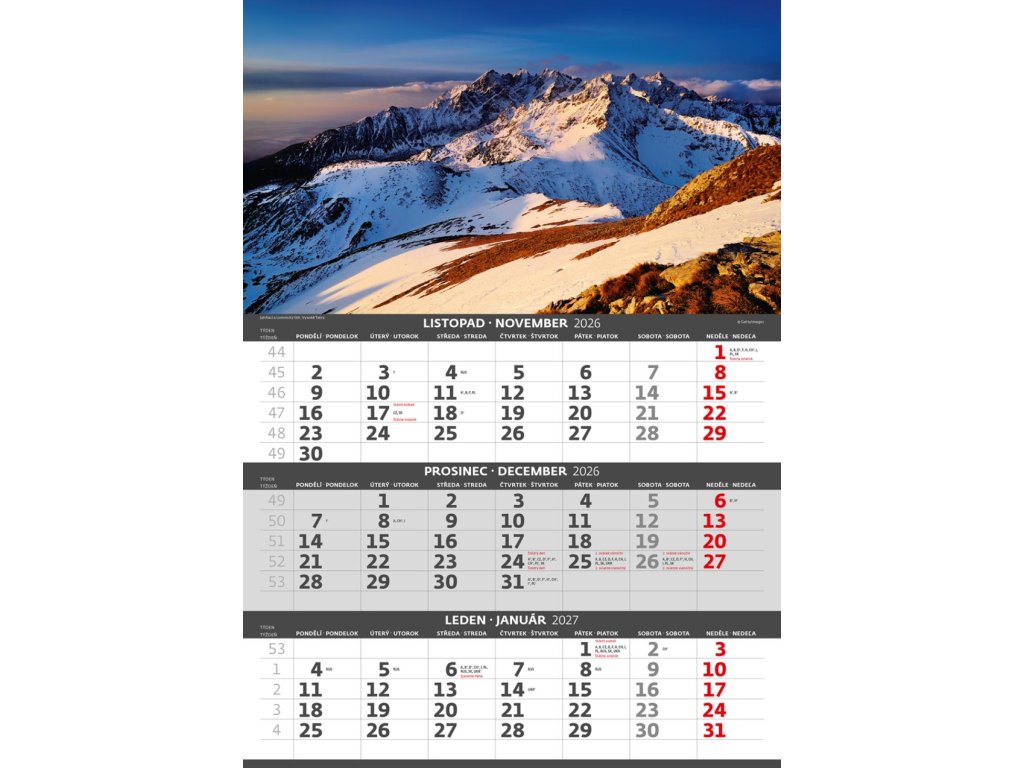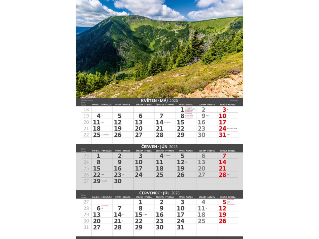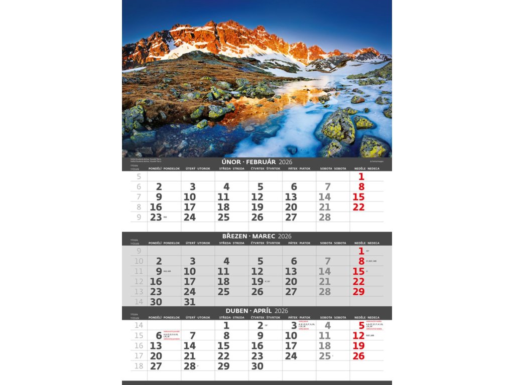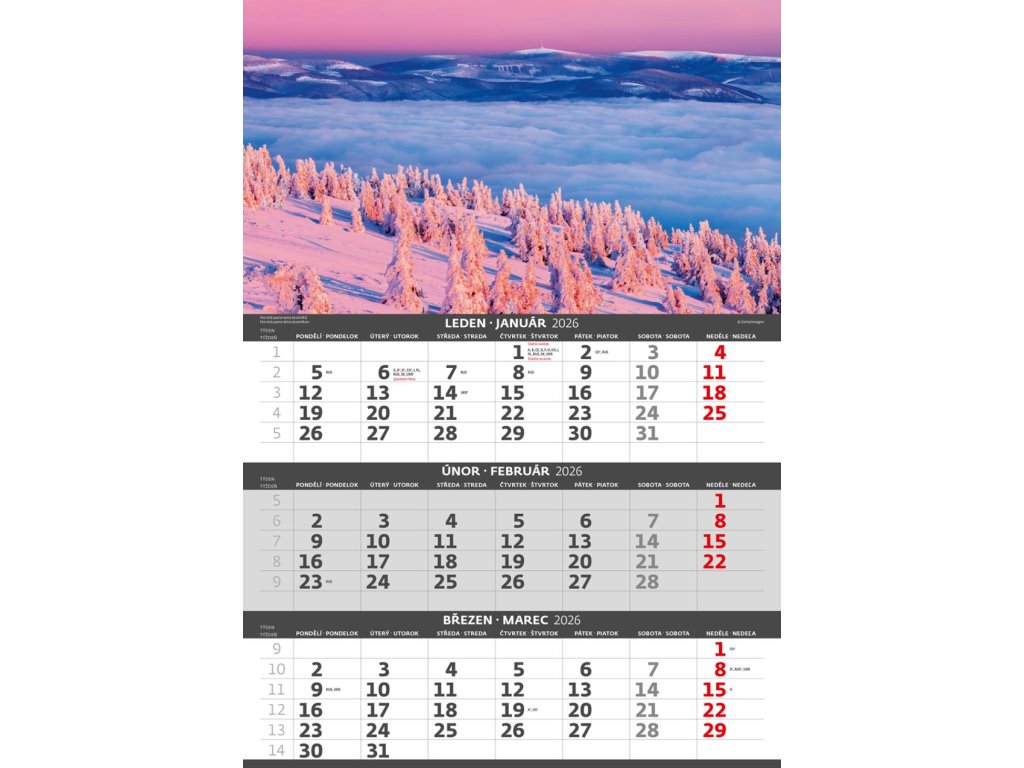Kalendár trojmesačný 2026 Hory