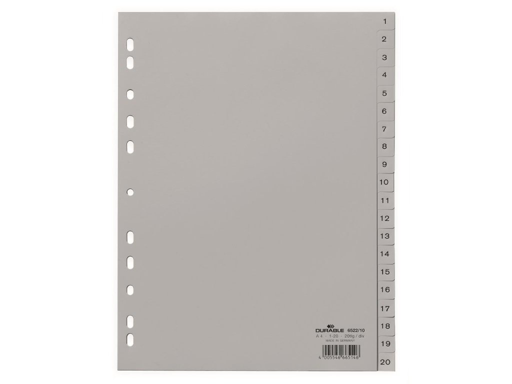 Plastový rozraďovač DURABLE 1-20 sivý